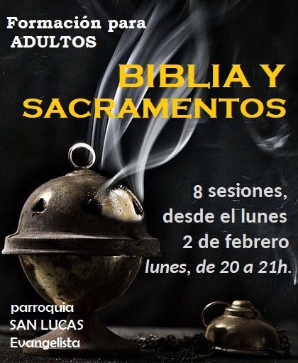 Como cada año, dedicamos el segundo trimestre del curso para ofrecer un tiempo de formación cristiana en nuestra «Aula de Formación San Lucas». En este año, trataremos de profundizar en la relación que existe entre los acontecimientos de la historia de la salvación narrados en la Sagrada Escritura y los sacramentos, que con sus ritos litúrgicos, nos hacen partícipes de esa historia santa en la que Dios sigue hoy ofreciendo la salvación a los hombres.